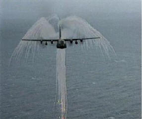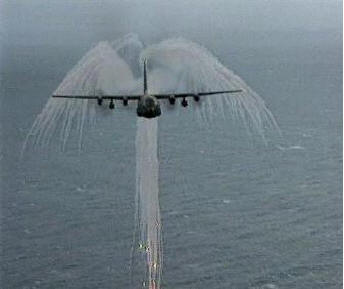Photos of an Air Force C-130 releasing flares to repel heat seeking missiles. The pattern formed by these "decoys" is how they got