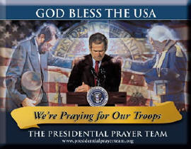 Please continue to pray for our president who has displayed such courage and strength that America has lacked for too long. In spite of what the Democrats would have us believe, this man is a man of God and truly a modern day hero. God bless you, President Bush.