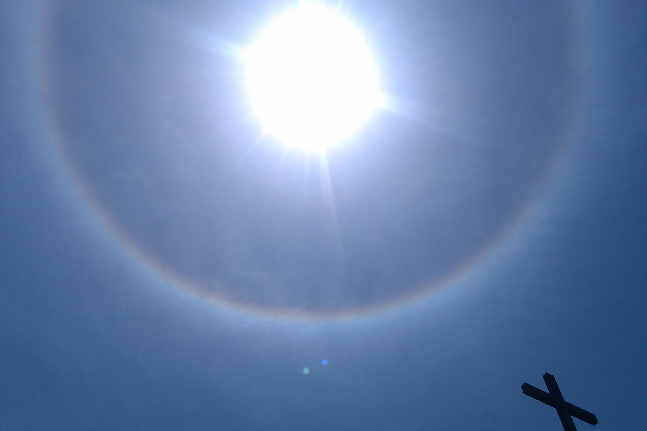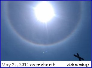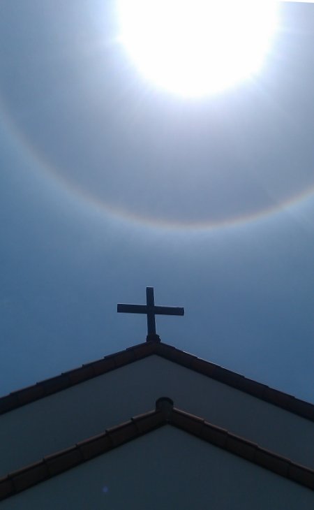 When I first started to see how events in my life lined up with events in Revelation 12, I looked for any words that described the woman as virtuous, because that would exclude me. I lived my life like most women in this culture and I have paid heavy prices. All that's good about me is what Christ has done for which I am so very grateful. So I wrote Study of the Revelation 12 woman. I still couldn't face it, and wrote King of my heart. Months passed and I struggled with it. I finally wrote about it on a Sunday morning before church, thinking I can't submit this to my publishers, I just can't. It was about the unique oval halo I saw 25 years ago and what I saw it to mean. The pastor gave an amazing sermon about doing what God tells us to do but I still knew I couldn't submit it. That's when the halo hung right over my church. I almost fell over when I came out of church and everyone was looking up at the sky behind me. I looked up and almost fell over. I wished I had brought my camera but thought if God wanted me to have a picture, He will provide. Then a woman stood behind my left shoulder and took one with her cell phone. I asked for a copy and she sent it in an email right then and there, and another one later. It was AMAZING and I knew, I had to submit what I wrote that morning.. I just had to. Rev. 12: A Gentile Woman Travailing. A short time later I wrote the last, Revelation 12: "And there appeared a great wonder in heaven" trying to figure it out. So many pieces fit but so many don't. I could be completely wrong, because if it's true, where are the two witnesses? And certain details are out of order. All I know for sure is what happened 25 years ago, what I saw over my church as I prayed about it and all the amazing things that God has done in my life. He does amazing things for anyone who gives their life to the Lord. Because the miracle was never about the Revelation 12 woman or the details around it. The miracle is that Christ came for her, for all of us, even in this culture of moral freefall...Christ comes for us. Do not miss Him. Ask Him into your life today because you don't know what tomorrow will bring. Nobody does. But the signs are everywhere. Come.