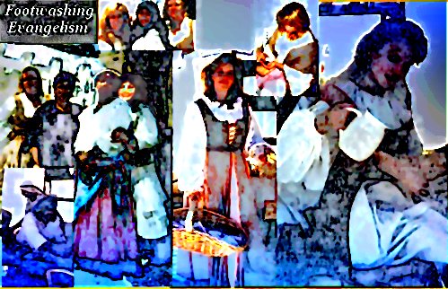 ![]() Footwashing Evangelism Sometimes with my church members, sometimes by myself, I go to various events around the county, put up a booth or tent, and wash feet of unbelievers as I share the Gospel with them. We do not and will never accept donations from those we minister to, that would taint the most precious thing I've ever had the privilege to do. It started with a Renaissance Faire and expanded to Farmer's Market, a weekly event of which 10,000 people attend. We pass out parchment scrolls in place of tracts. We wash feet with rose pedaled water, warm soothing water on cold winter nights or cold and refreshing water on hot dusty days. Then we oil and massage feet as we share the Gospel of Jesus Christ, the Good News, that He died for our sins that we could have a relationship with God again. I've seen the most amazing things happen at these events. I've seen walls crumble down, I've seen things that I will not speak of. The world would never believe me anyway. We listen to people, we give away free Bibles and tapes and we pray for people. Words cannot describe what happens when God answers prayers and opens eyes. If you want to radically enhance your walk with the Lord, pray and ask if He will lead you in something like that, it's such a blessing! Jen's Journal of God and the 1st Renaissance Faire Ever since I read and heard about last year's deserted Bethlehem Square at Christmas due to the turmoil there, I've been praying about doing a footwashing ministry there this Christmas. Please pray for God's leading and opening of doors. What's on a footwashing scroll: God loves you! Jesus had a choice. He could have stayed in the carpentry shop. He could have kept His mouth shut. He could have ignored the call or at least postponed it. He could have come back as a man in another era when people would listen better. He could have come back when crosses were out of style. But His heart wouldn’t let Him. If there was hesitation on the part of His humanity, it was overcome by the compassion of His divinity. His divinity heard the voices. His divinity heard the hopeless cries of the poor, the bitter accusations of the abandoned, the dangling despair of those who are trying to save them-selves. And His divinity saw the faces. Some wrinkled. Some weeping. Some hidden behind veils. Some obscured by fear. Some earnest with searching. Some blank with boredom. From the face of Adam to the face of the infant born somewhere in the world as you read these words, He saw them all. And you can be sure of one thing. Among the voices that found their way into that carpentry shop was your voice. Your silent prayers uttered on tearstained pillows were heard before they were said. Your deepest questions about death and eternity were answered before they were asked. And your direst need, your need for a Savior, was met before you ever sinned. And not only did He hear you, He saw you. He saw your face aglow the hour you first knew Him. He saw your face in shame the hour you first fell. The same face that looked back at you from this morning’s mirror, looked at Him. And it was enough to kill Him. He left because of you. He laid His security down with His hammer. He hung tranquility on the peg with His nail apron. He closed the window shutters on the sunshine of His youth and locked the door on the comfort and ease of anonymity. Since He could bear your sins more easily than He could bear the thought of your hopelessness, He chose to leave. It wasn’t easy. Leaving the carpentry shop never has been. (Max Lucado) “Father, if it is Your will, take this cup away from Me; nevertheless not My will, but Yours, be done” God’s answer to Jesus was to drink of that cup, for there was no other payment possible for our sins. Buddha didn’t pay it, a vague god of the universe can’t circumvent it. Jesus said, “I am the way, the truth and the life; no one can come to the Father except through Me.” You see, God loves you, but before that He is holy and He cannot mix with sin. It’s as though your dad is a judge and you are brought before him, guilty of a speeding ticket. You think you’ve got it beat, dad won’t convict you, he loves you. But the judge proclaims you guilty for he is just. And then he reaches in his back pocket, pulls out his wallet and pays your fine himself. You have a choice. You can refuse your Father’s loving payment and suffer the consequences, but the fine for our sins is death. Jesus already paid that price but you have to accept it. The choice is yours, and all eternity is riding on your decision. So many will not accept that we sin. Haven’t you ever been angry when someone cuts you off on the freeway? Did you react? That reaction is not the nature of God. The standard is not man’s nature, but God’s. And the Bible says we ALL fall short, there is none that is righteous, no not one. God doesn’t want us walking around in shame, He wants to forgive us and help us become who He created us to be by His Spirit. All we have to do is come as we are, accept Him and turn from our sins. He knows we will fail at times, but to press on. Jesus is faithful to wash away sins that we may be righteous and holy. The Apostles knew this, and they would not have gone on to suffer and die painful deaths for a lie. Are you willing to turn your life completely over to Him? If you are, pray this prayer “Dear Father, I know I have sinned. I believe Jesus died for me. I ask for Your forgiveness right now. I choose to turn from my rebellion against You. Jesus, please come into my heart and take over my life. Fill me with Your Holy Spirit and help me to serve You. In Jesus’ name I pray.” Various Personal Testimonies